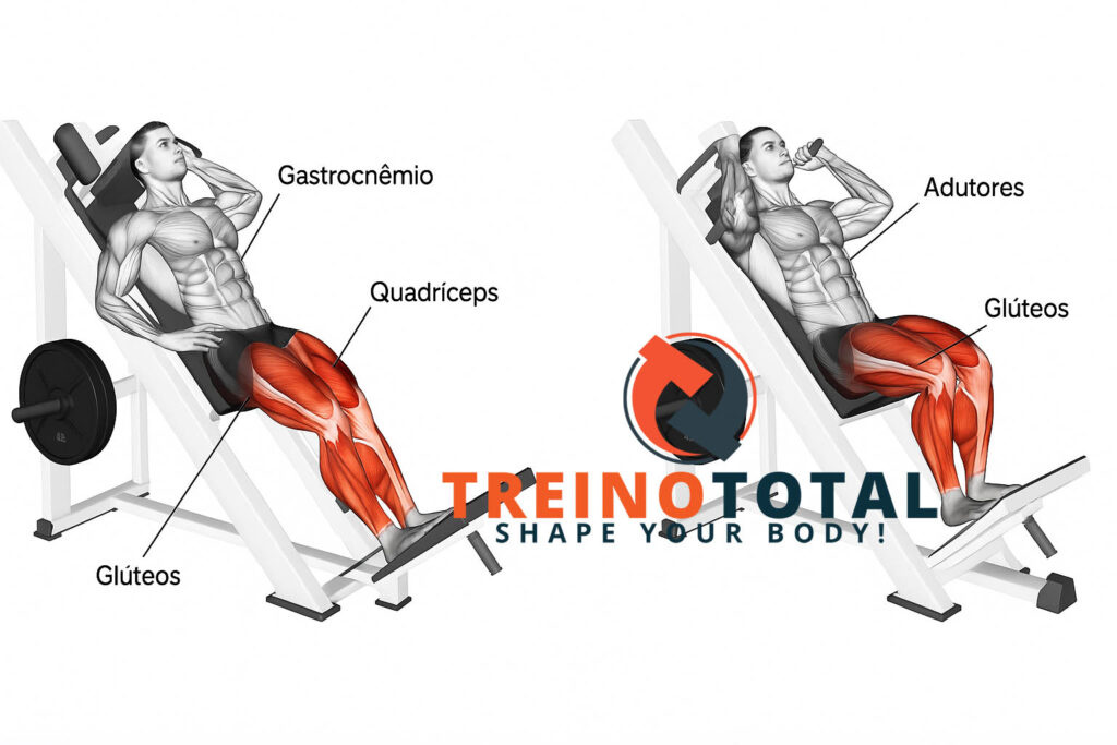 - Glúteos: Principalmente o glúteo máximo, que trabalha na extensão do quadril, especialmente na fase final da subida. Posicionar os pés mais altos na plataforma pode aumentar a ativação dessa região.